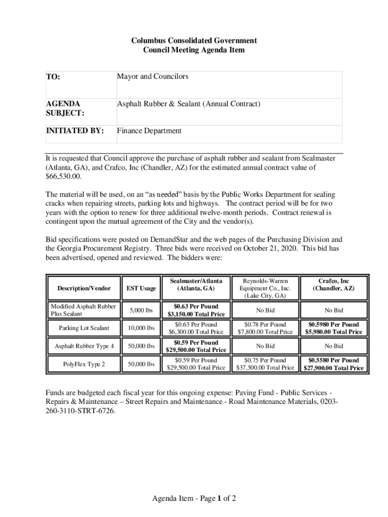 Get the free Asphalt Rubber & Sealant (Annual Contract)