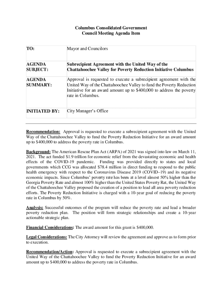 Get the free Subrecipient Agreement with the United Way of the