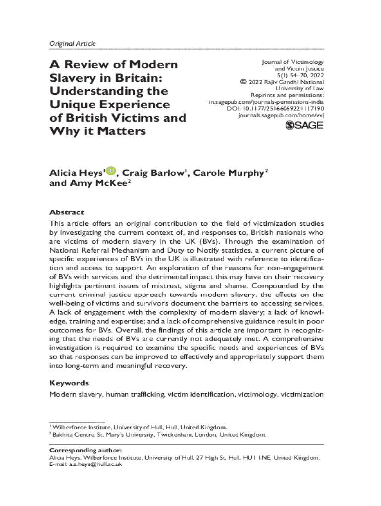Get the free A Review Of Modern Slavery In Britain - Hull Repository