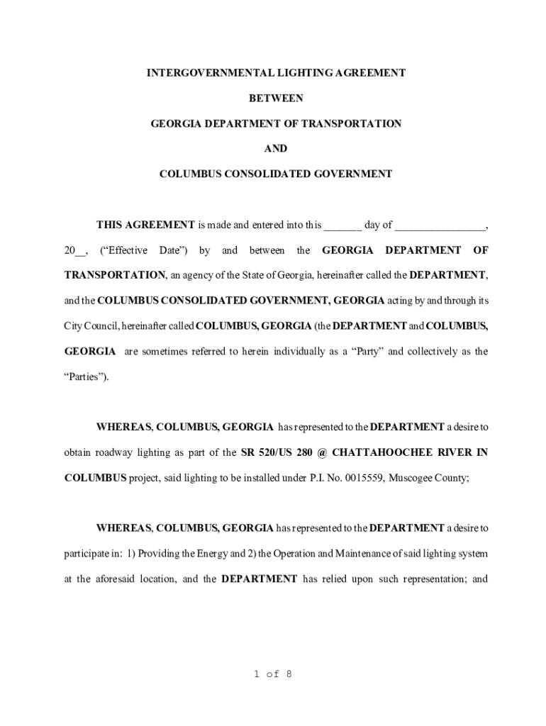 Get the free INTERGOVERNMENTAL LIGHTING AGREEMENT