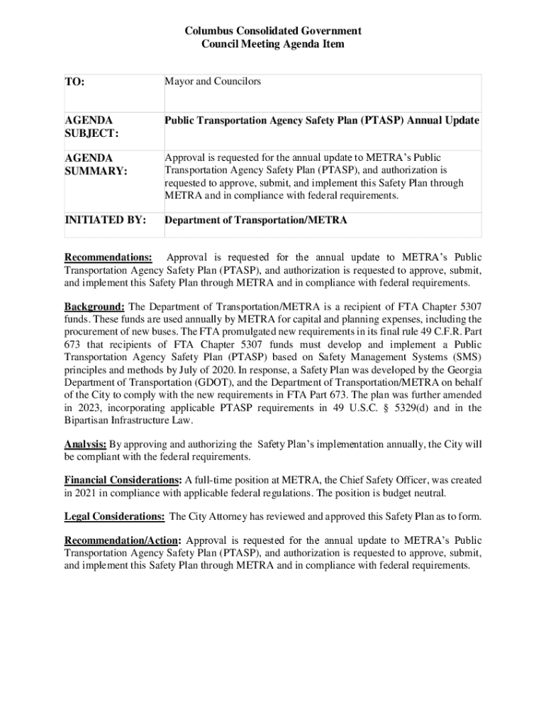 Get the free Mayor and Councilors AGENDA SUBJECT: METRA's 2024 ...