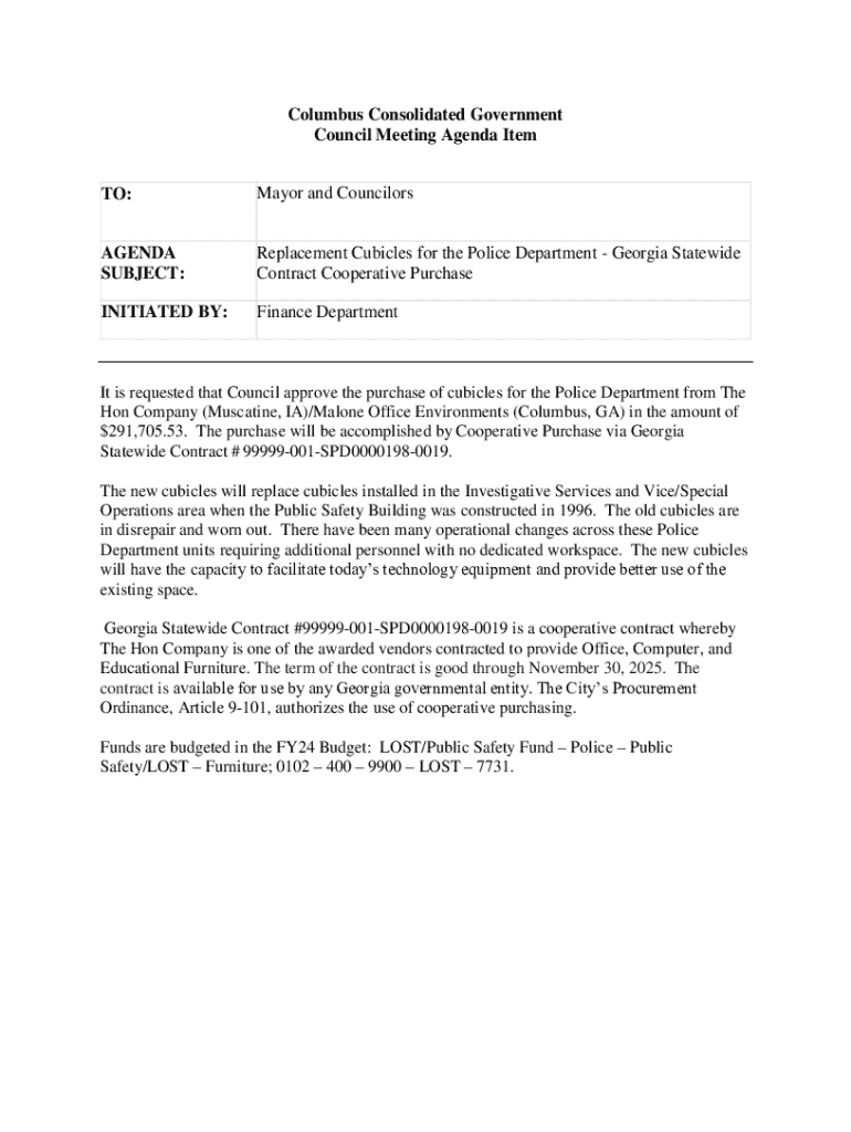 The importance of the agenda form in local governance cannot be overstated. It not only promotes transparency and accountability within the council but also allows for effective communication with constituents about governance matters. Key features of the agenda form typically include space for the names of the mayor and councilors, meeting date and time, specific agenda items, and provisions for supporting documents that need to be reviewed.