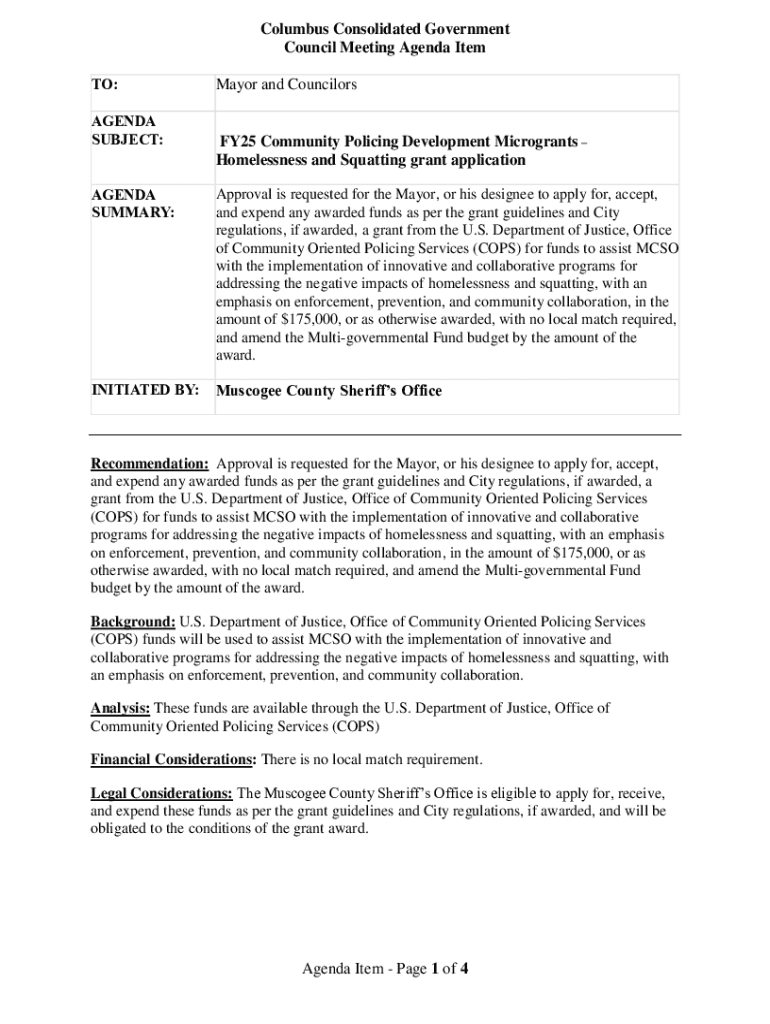 The FY25 Community Policing Development Form is a pivotal document for law enforcement agencies across the United States, aimed at enhancing community safety and trust through effective policing strategies. Community policing endeavors to build partnerships between police departments and the communities they serve, recognizing that public safety is a shared responsibility. The FY25 funding objectives focus on fostering innovative community policing initiatives, which are vital for adapting to the evolving needs of neighborhoods and towns.