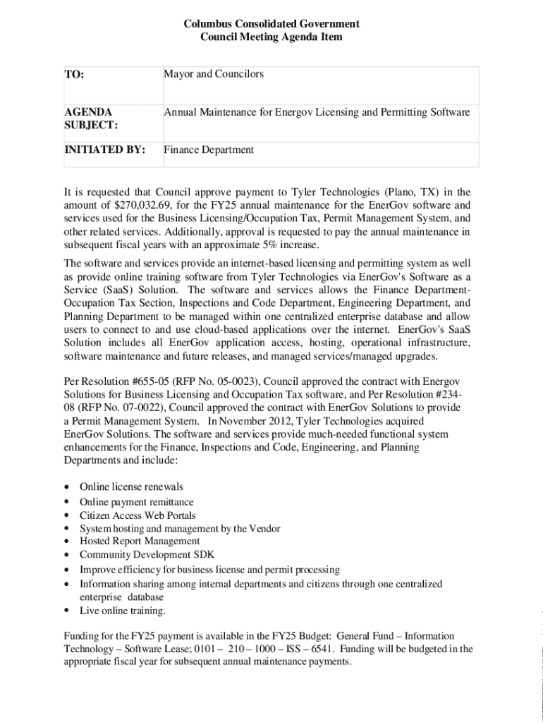 Get the free Mayor and Councilors AGENDA SUBJECT: EnerGov Software ...