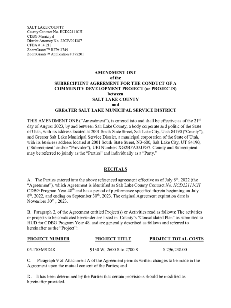 Get the free AMENDMENT ONE of the SUBRECIPIENT AGREEMENT ...