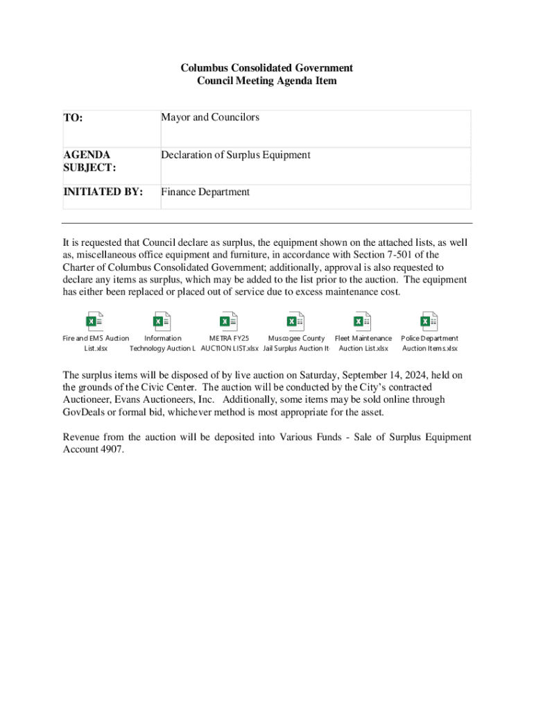 Get the free Surplus Equipment INITIAT