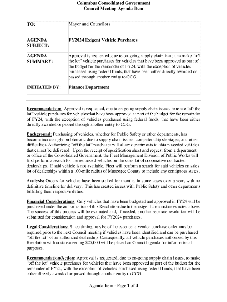 Get the free FY2024 Exigent Vehicle Purchases
