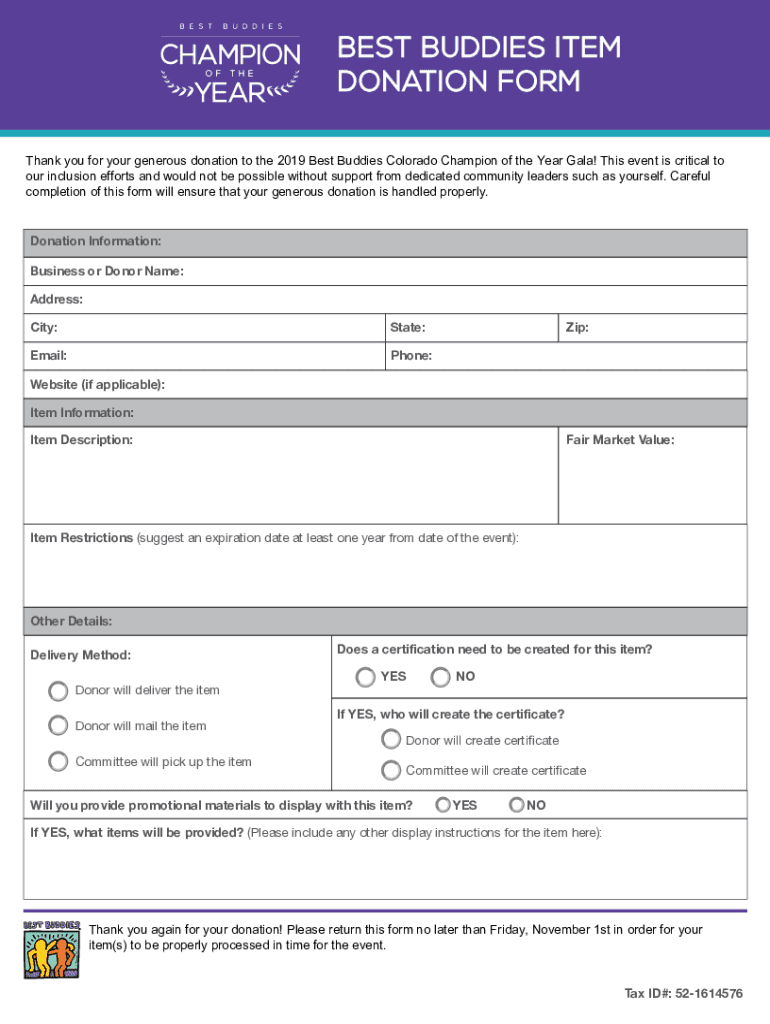 Get the free BEST BUDDIES ITEM DONATION FORM