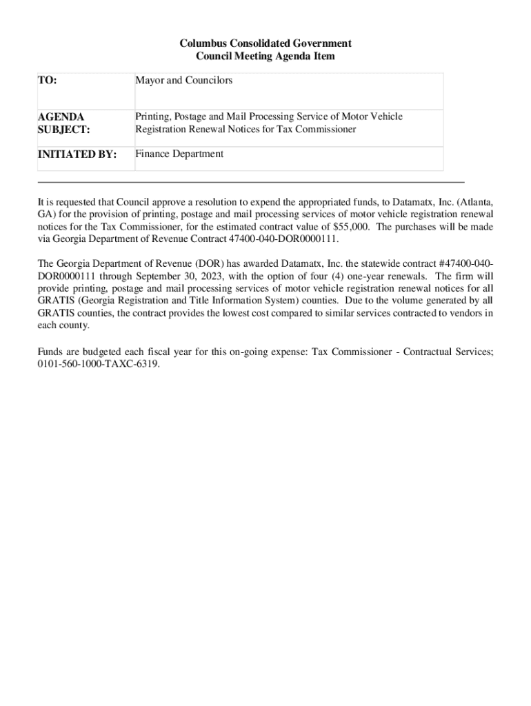 Get the free Mayor and Councilors AGENDA SUBJECT: Printing, Postage ...