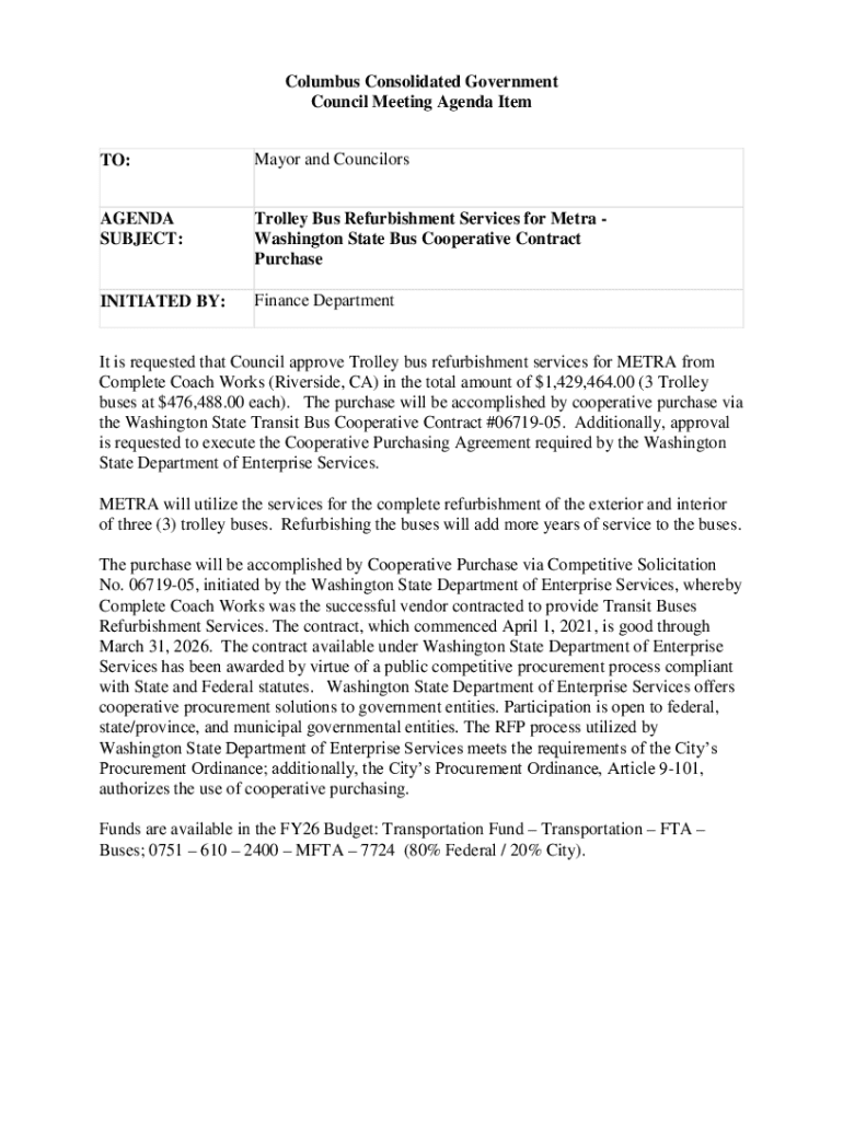 Get the free Mayor and Councilors AGENDA SUBJECT: Electric Buses For ...