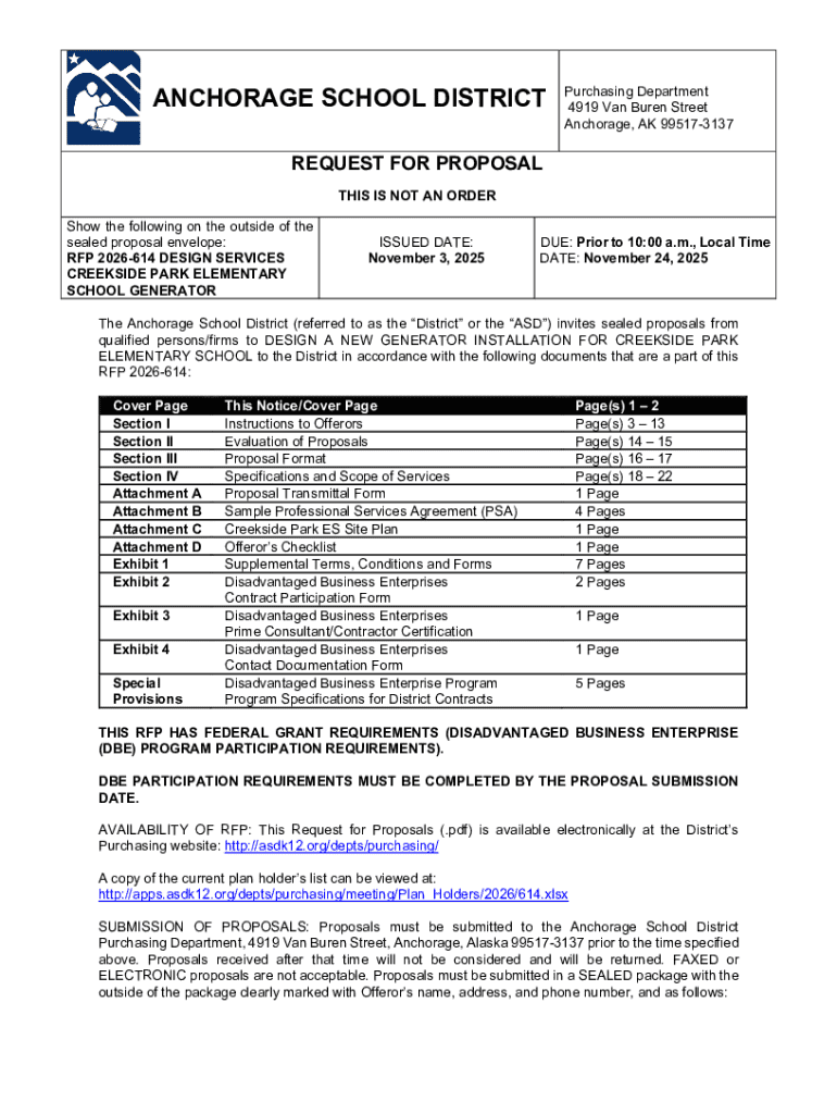 ANCHORAGE SCHOOL DISTRICTPurchasing Department 4919 Van Buren Street Anchorage, AK 995173137REQUEST FOR PROPOSAL THIS IS NOT AN ORDER Show the following on the outside of the sealed proposal envelope: