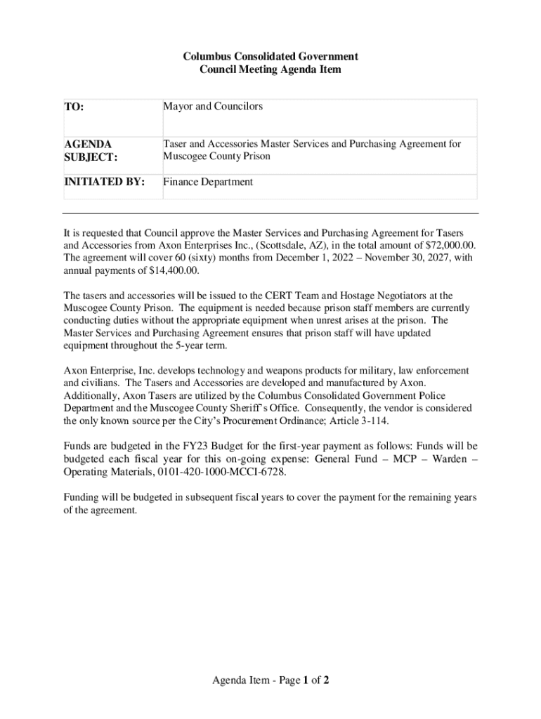 Get the free Mayor and Councilors AGENDA SUBJECT: Inmate Supplies ...