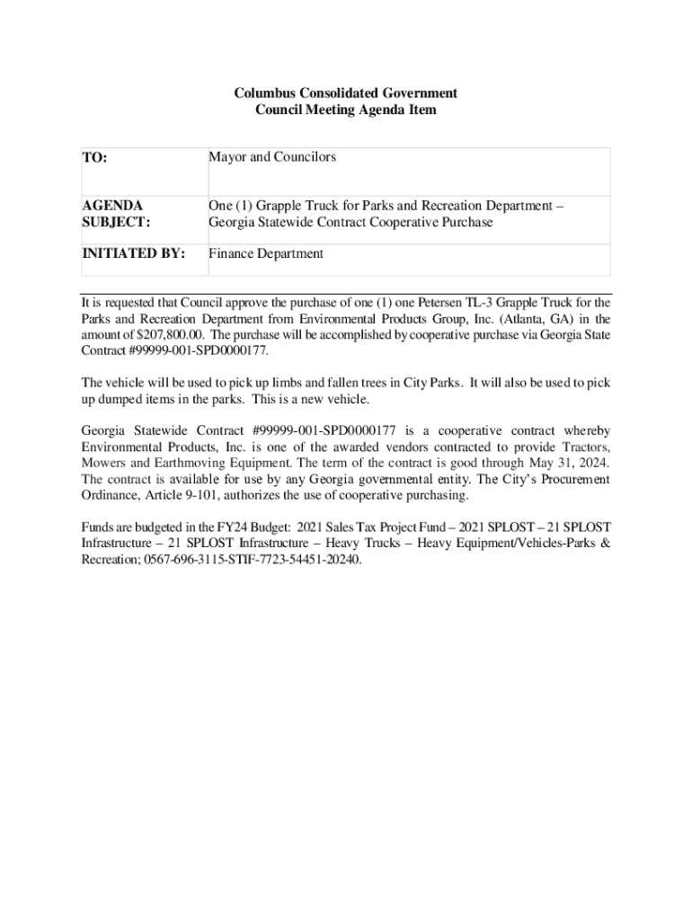 Get the free One (1) Grapple Truck for Parks and Recreation Department