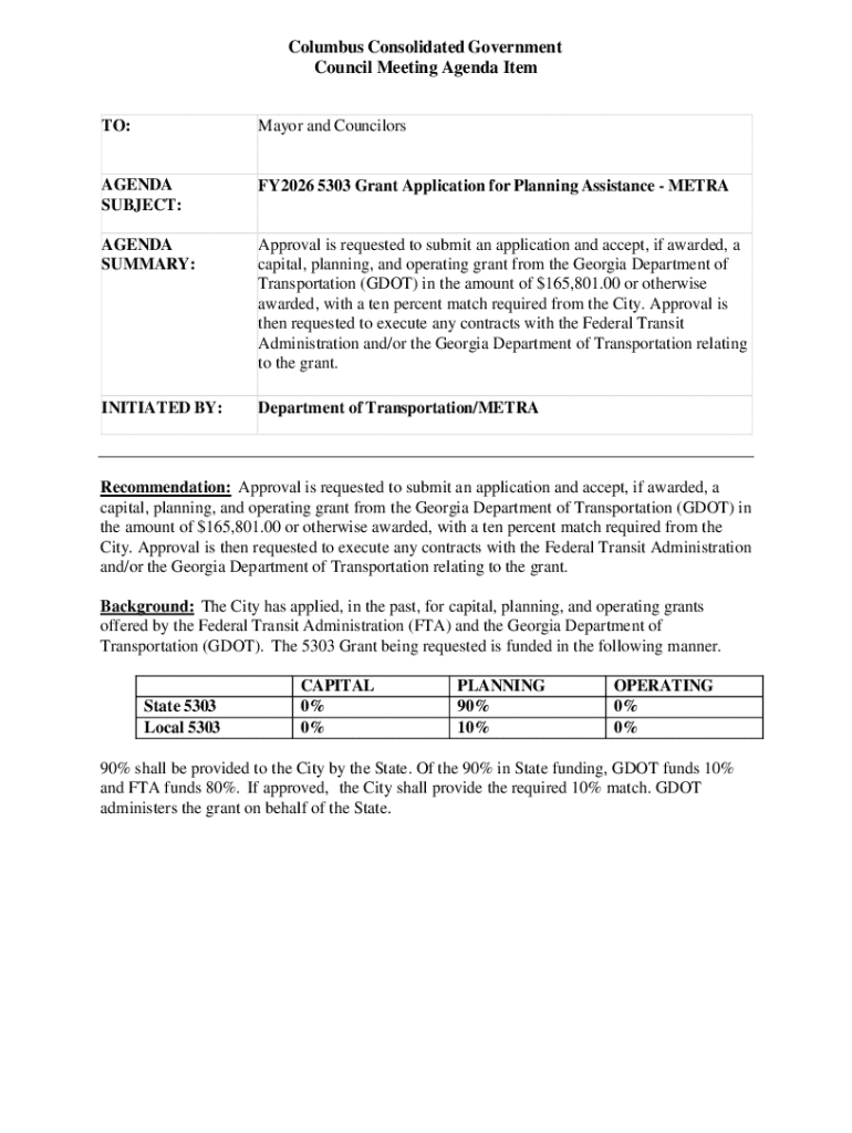 Get the free Mayor and Councilors AGENDA SUBJECT: FY2026 5303 ...