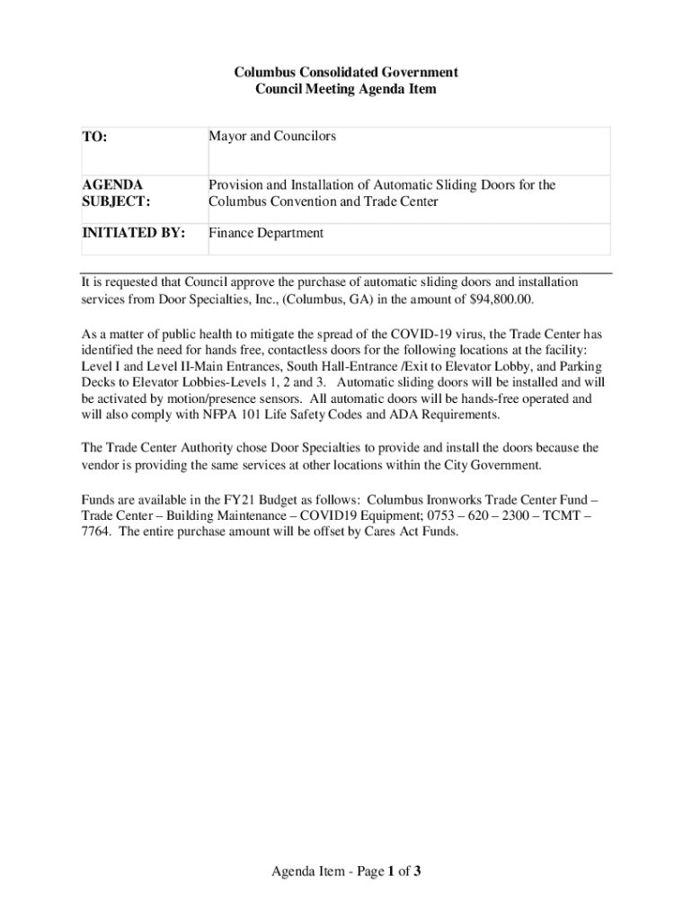 Get the free Mayor and Councilors AGENDA SUBJECT: Overhead Door ...