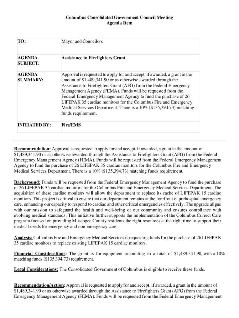 Get the free Mayor and Councilors AGENDA SUBJECT: FEMAFire ...