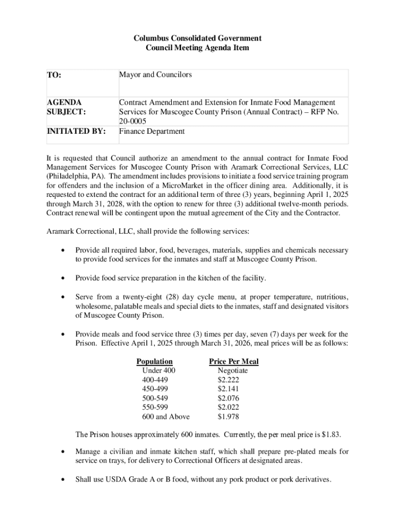 Get the free Contract Amendment and Extension for Inmate Food Management