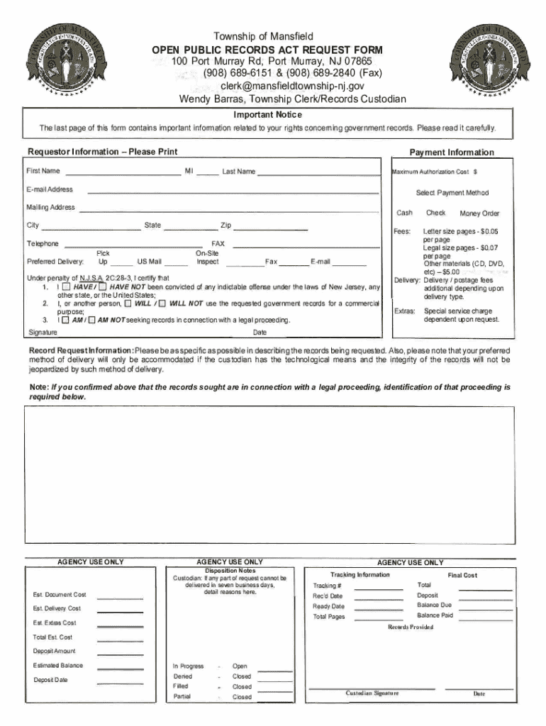 Get the free OPEN PUBLIC RECORDS ACT REQUEST FORM 100 Port Murray ...