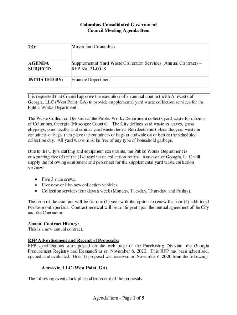 Get the free Supplemental Yard Waste Collection Services (Annual Contract)
