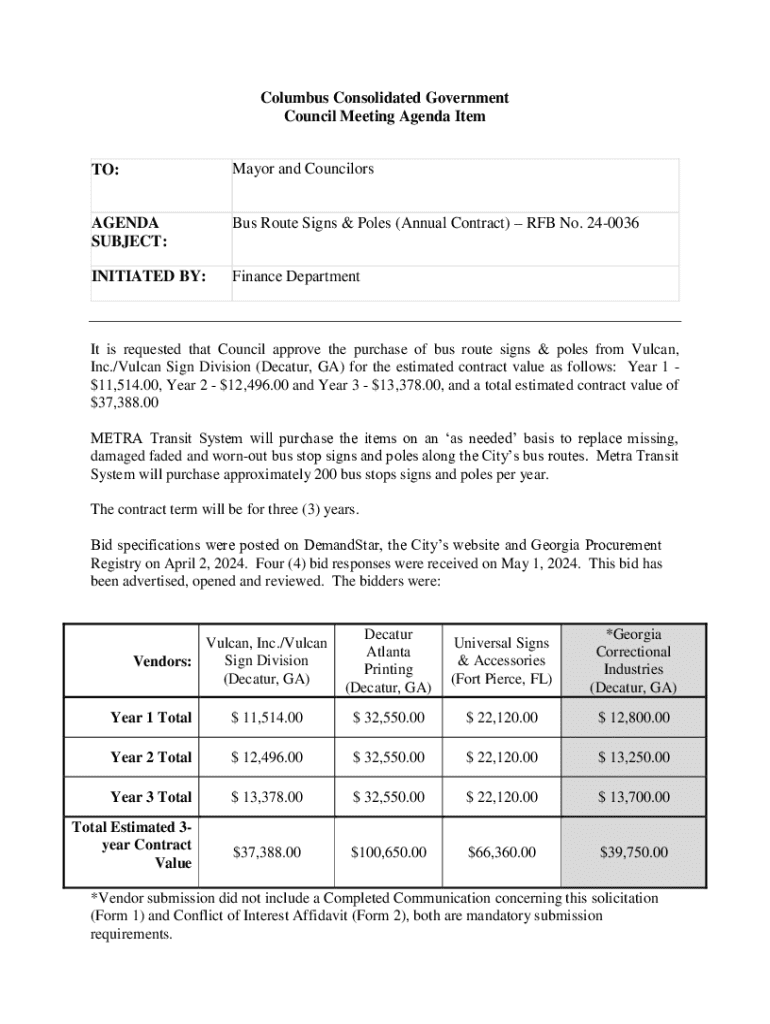 Get the free It is requested that Council approve the purchase of bus route signs & poles from Vu...