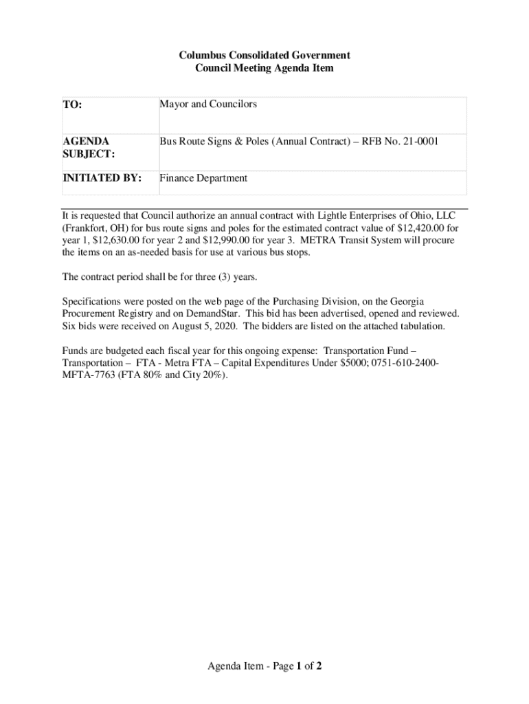Get the free Bus Route Signs & Poles (Annual Contract) RFB No