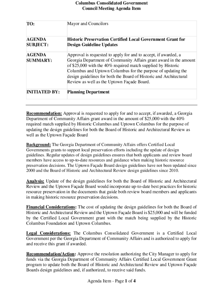 Get the free Historic Preservation Certified Local Government Grant for