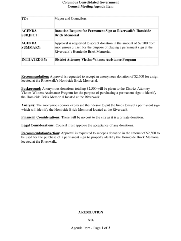 Get the free Donation Request for Permanent Sign at Riverwalks Homicide