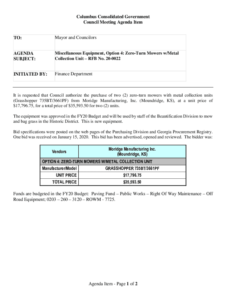 Get the free Miscellaneous Equipment, Option 4: Zero-Turn Mowers w/Metal