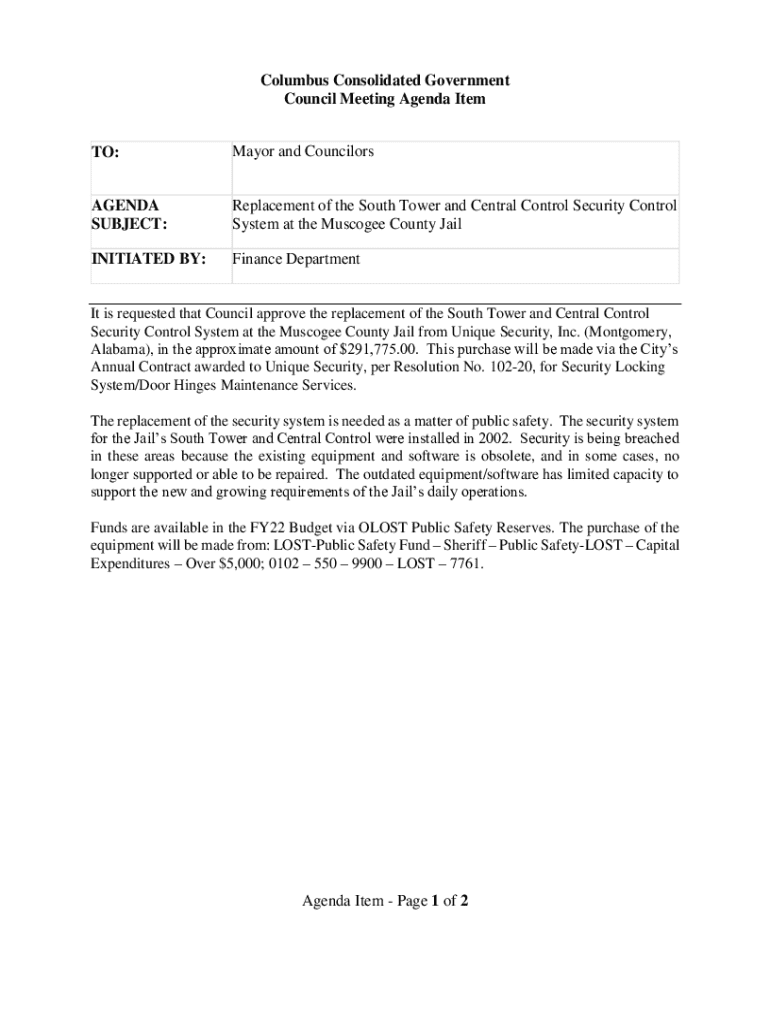 Get the free Mayor and Councilors AGENDA SUBJECT: Intercom Control ...