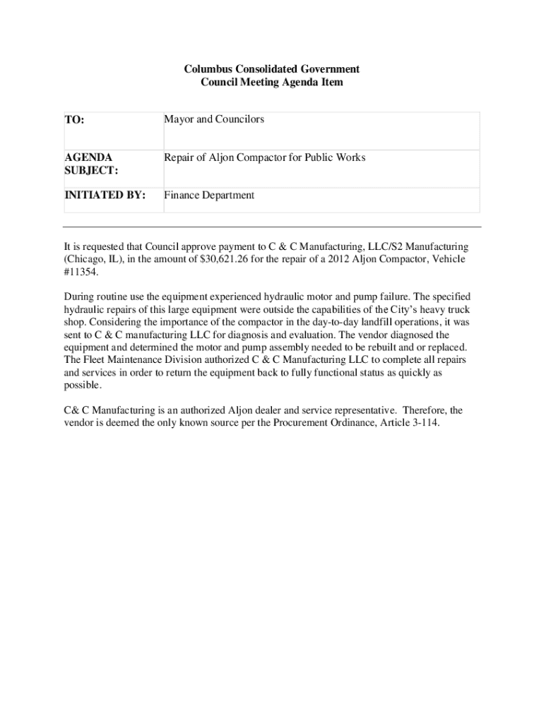 Get the free Repair of Aljon Compactor for Public Works