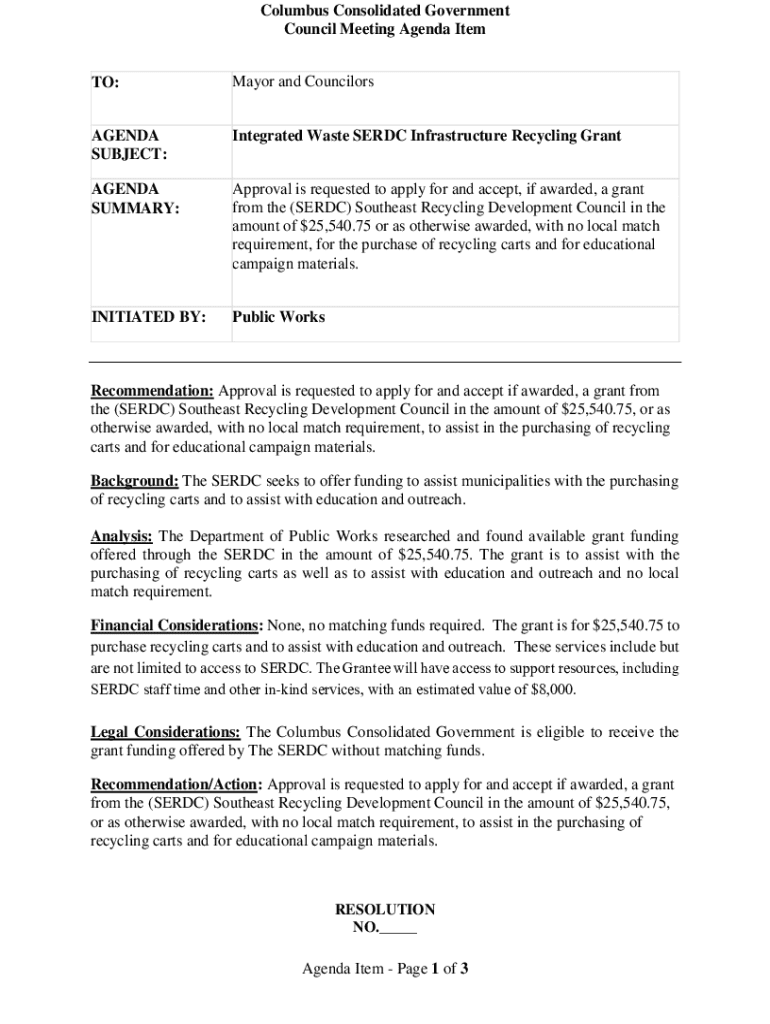 Get the free Integrated Waste SERDC Infrastructure Recycling Grant
