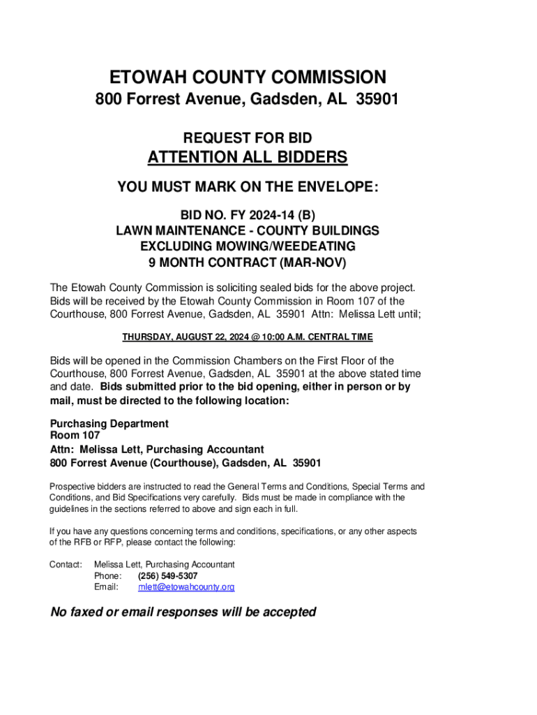 Get the free BID NO FY 2024-14 A & B LAWN MAINTENANCE
