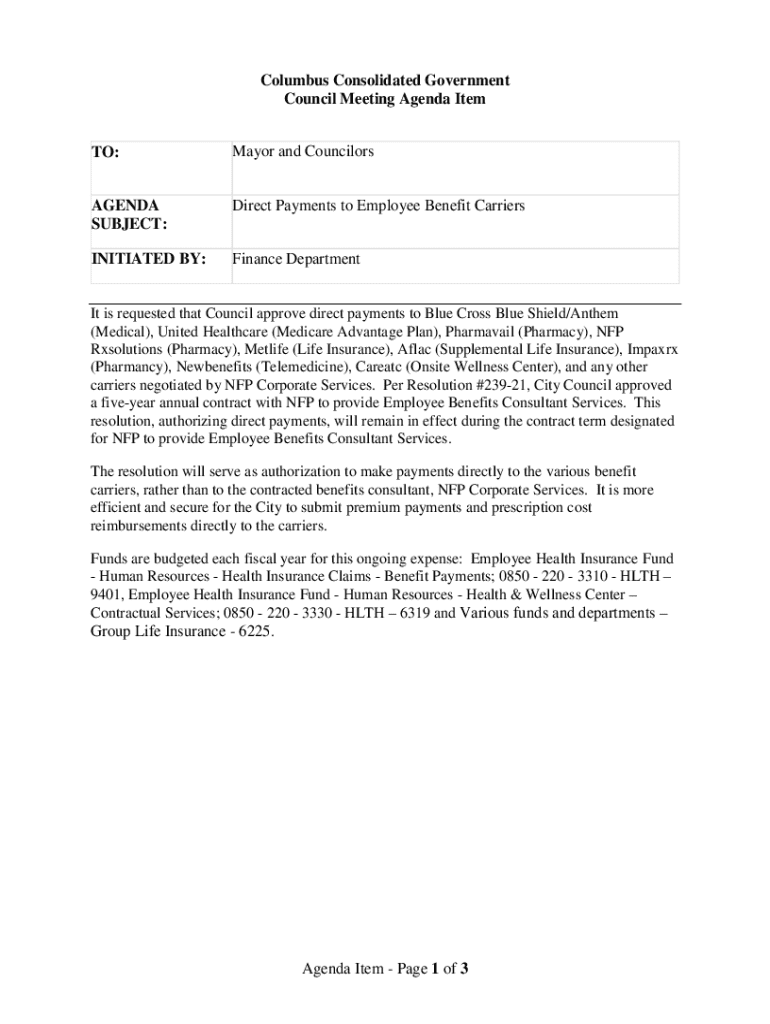 Get the free Direct Payments to Employee Benefit Carriers