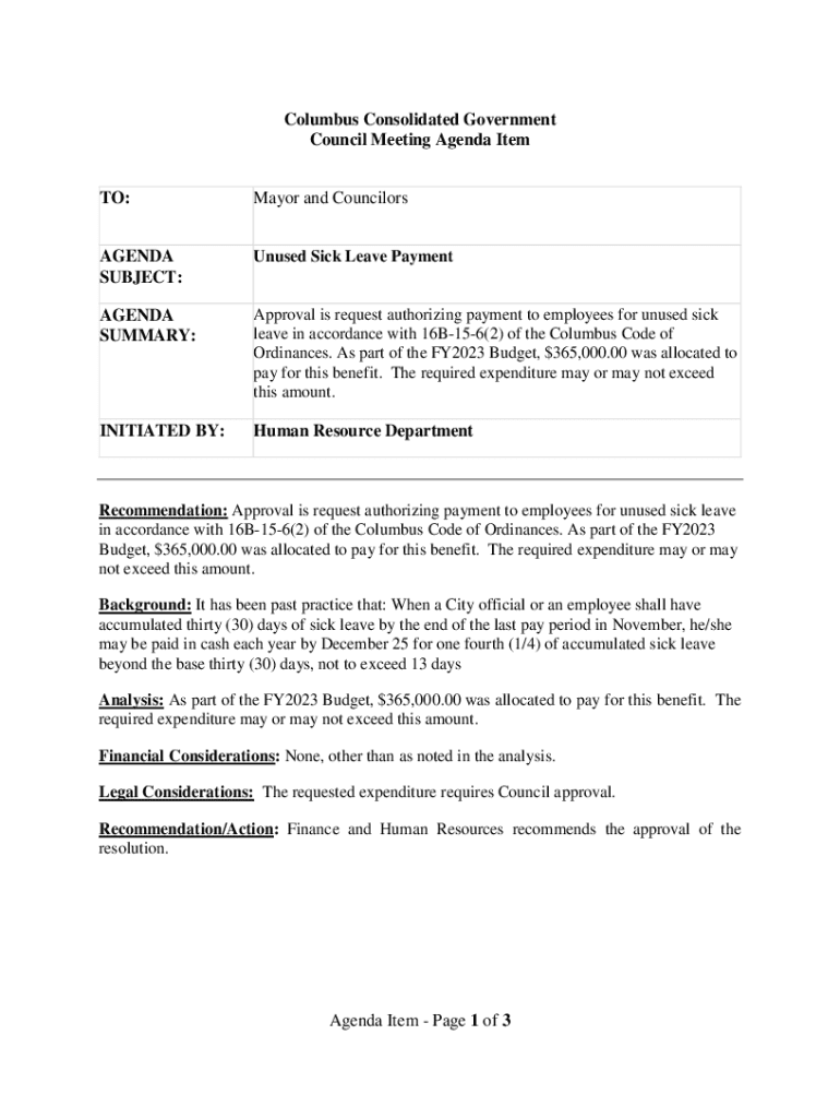 Get the free Unused Sick Leave Payment
