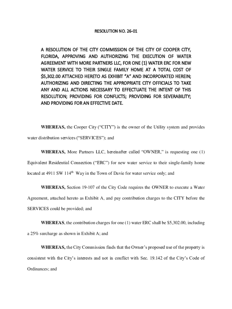 Get the free OF COOPER CITY, FLORIDA, APPROVING AND ...