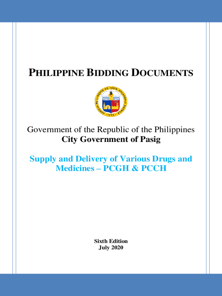 PHILIPPINE BIDDING DOCUMENTSGovernment of the Republic of the Philippines City Government of Pasig Supply and Delivery of Various Drugs and MedicinesPCGH & PCCHSixth Edition July 20200Preface These
