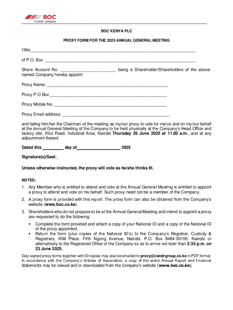 Filling out a BOC Aviation proxy form accurately is vital. Completing the form requires specific information to validate the submission.