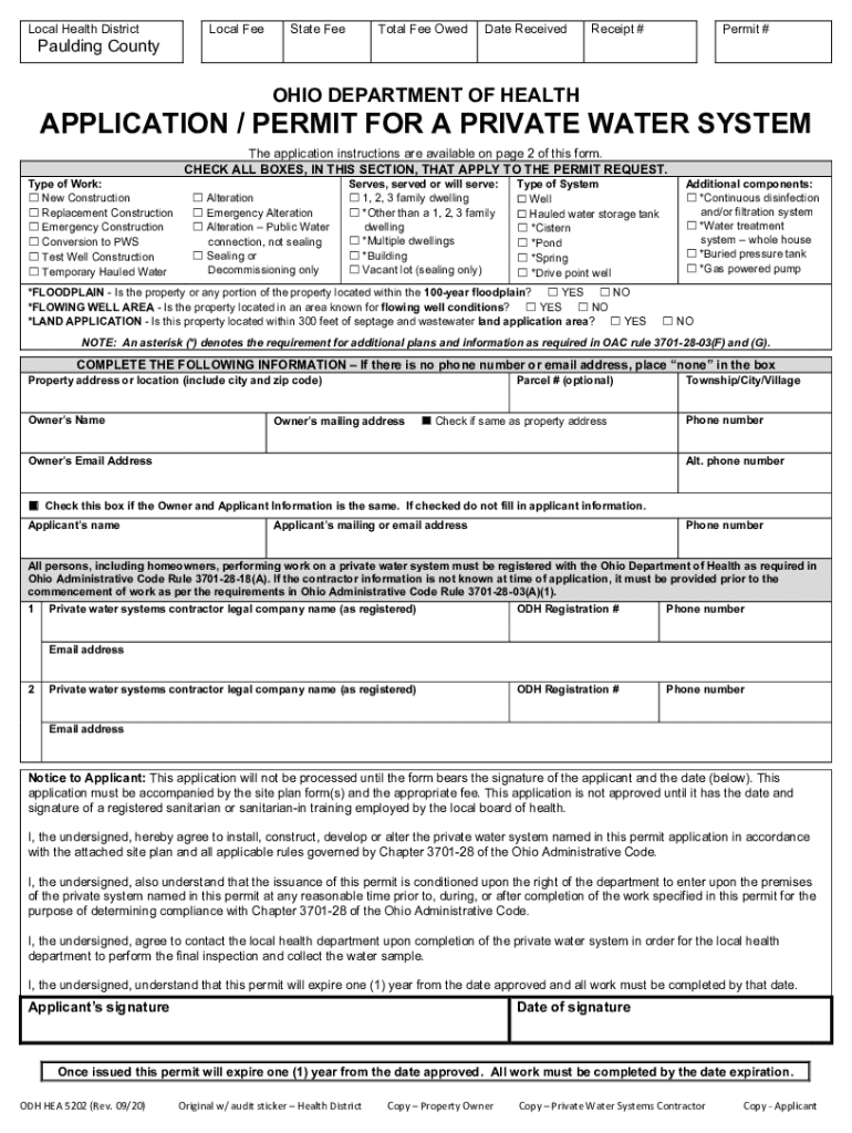 Get the free Private Water Permit Instructions - Paulding County Health Department