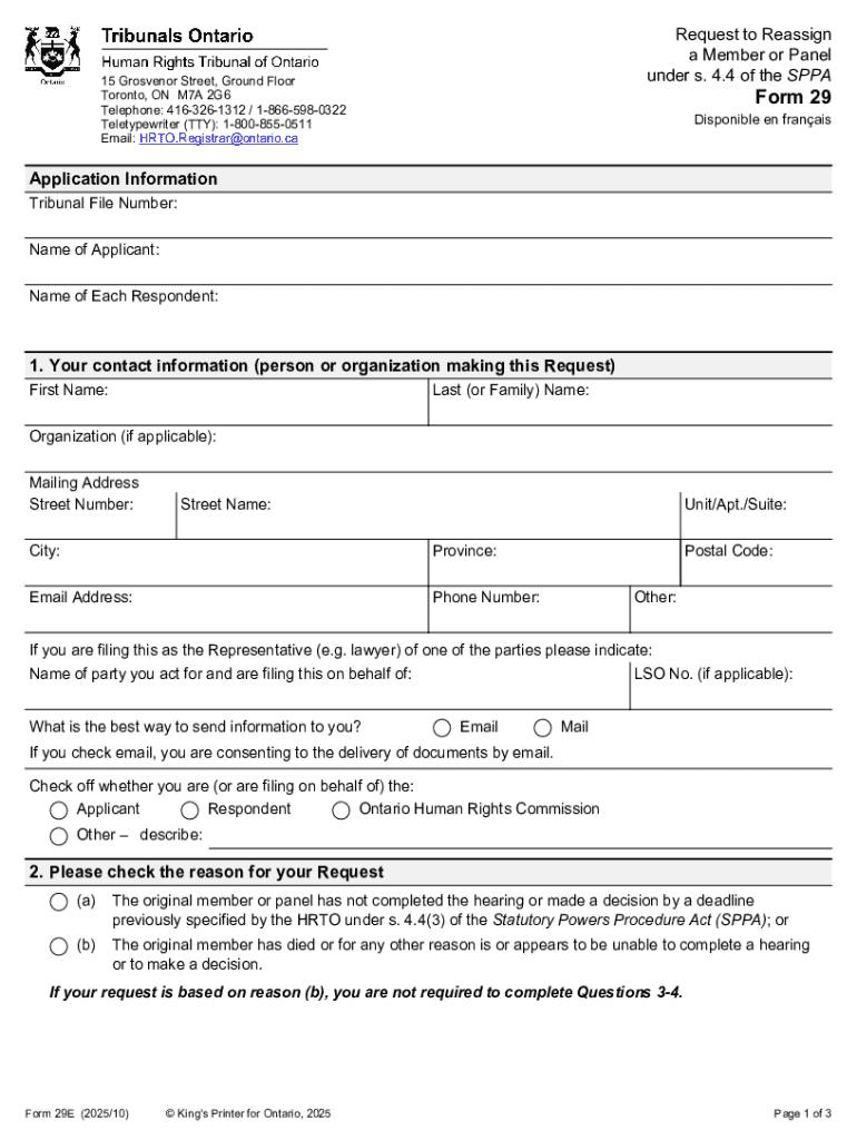 Get the free Request to Reassign a Member or Panel under s. 4.4 of the SPPA (Form 29)