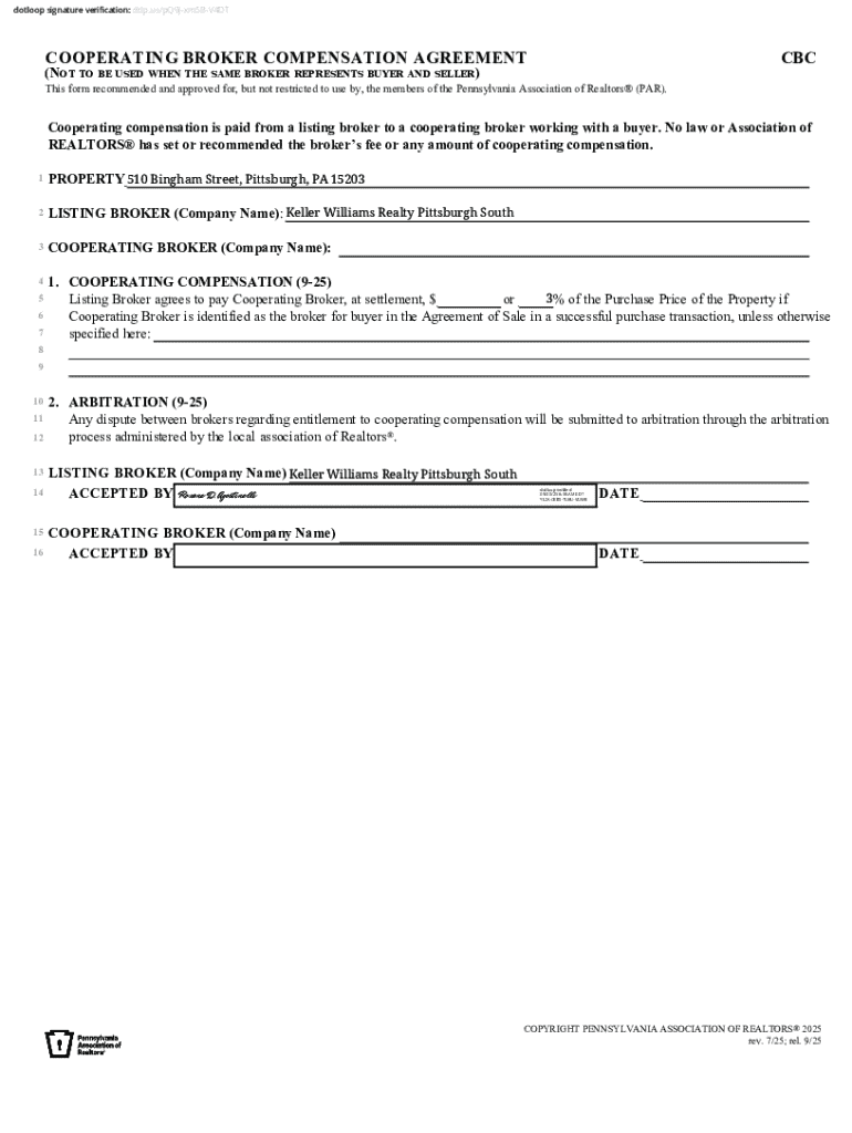 Get the free cooperating broker compensation agreement - Roxane Agostinelli
