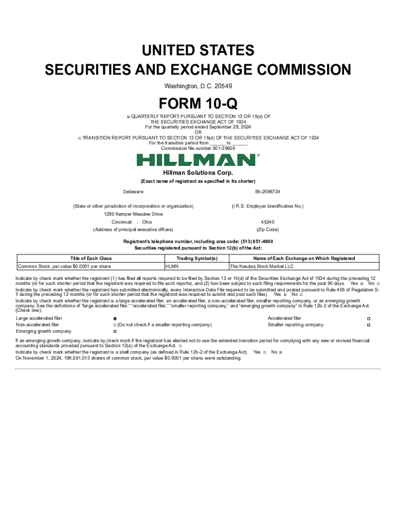 Get the free FORM 10-Q - Hillman Solutions Corp.