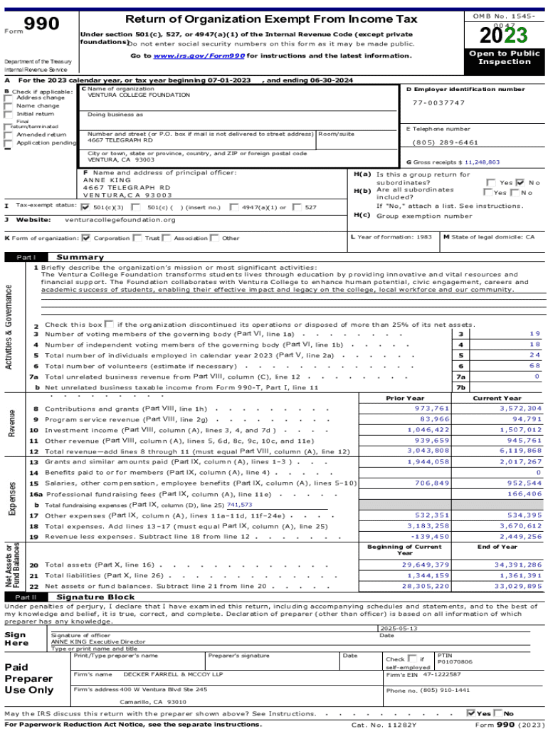 FormOMB No. 1545Return of Organization Exempt From Income Tax99000472023Under section 501(c), 527, or 4947(a)(1) of the Internal Revenue Code (except private foundations)Do not enter social security