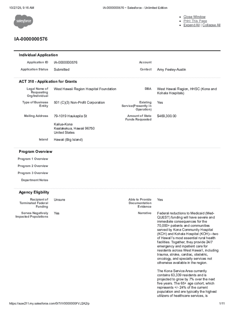 10/27/25, 9:16 AMIA0000000576SalesforceUnlimited EditionClose Window Print This Page Expand All | Collapse AllIA0000000576 Individual Application Application ID Application StatusIA0000000576AccountSubmittedContactAmy