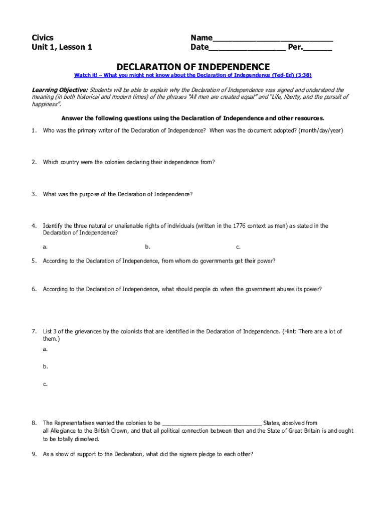 Get the free What you might not know about the Declaration of ...