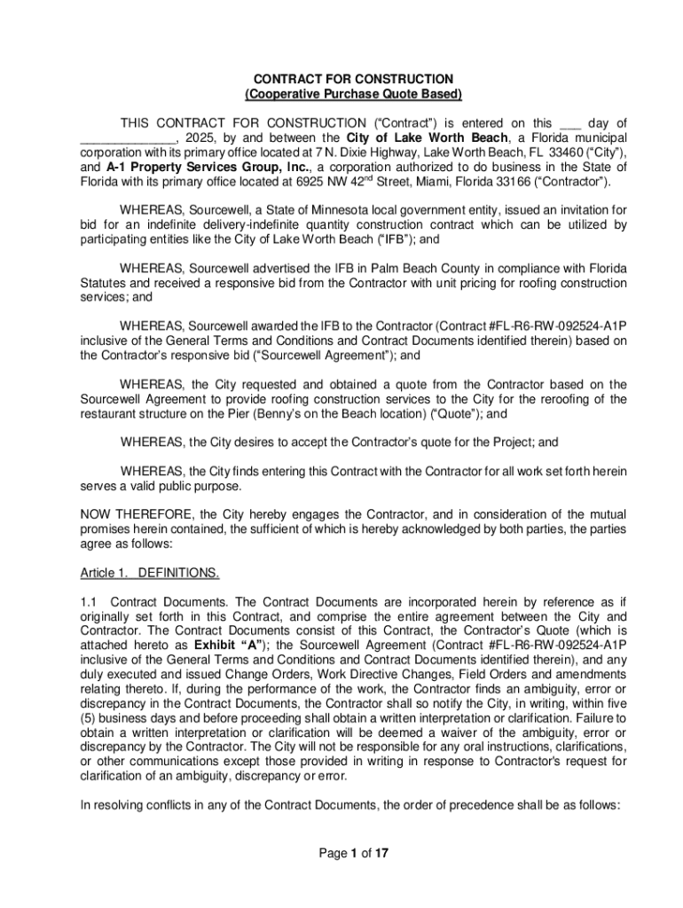 Get the free Page 1 of 17 CONTRACT FOR CONSTRUCTION ...