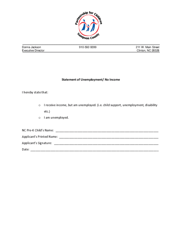 Get the free Statement of Unemployment/ No Income I hereby state that