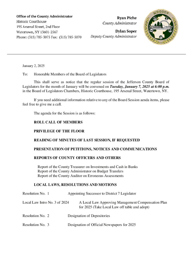 Get the free To: Honorable Members of the Board of Legislators ...