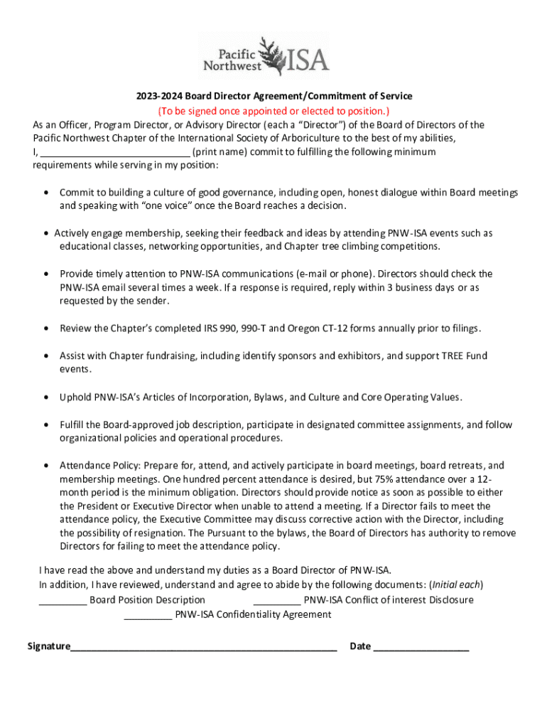 Get the free 2023-2024 Board Director Agreement/Commitment of Service