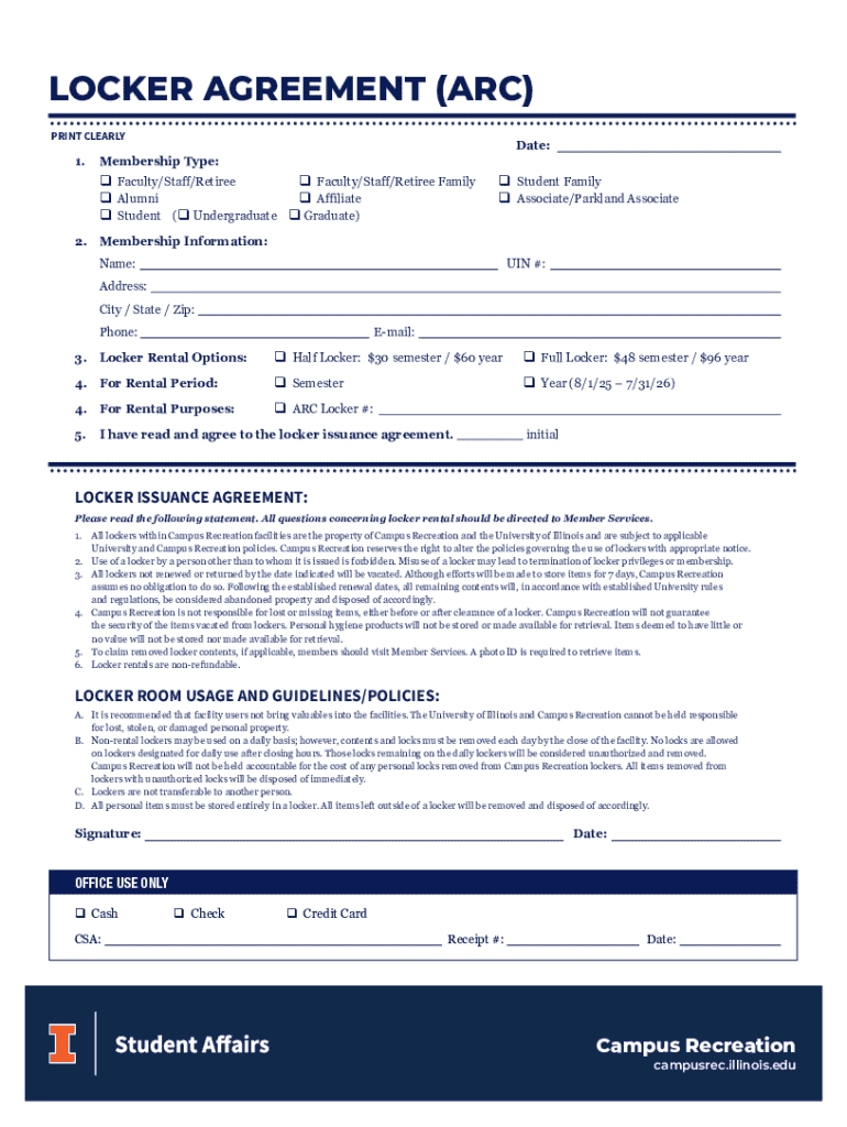 Get the free LOCKER AGREEMENT (ARC) - Campus Recreation