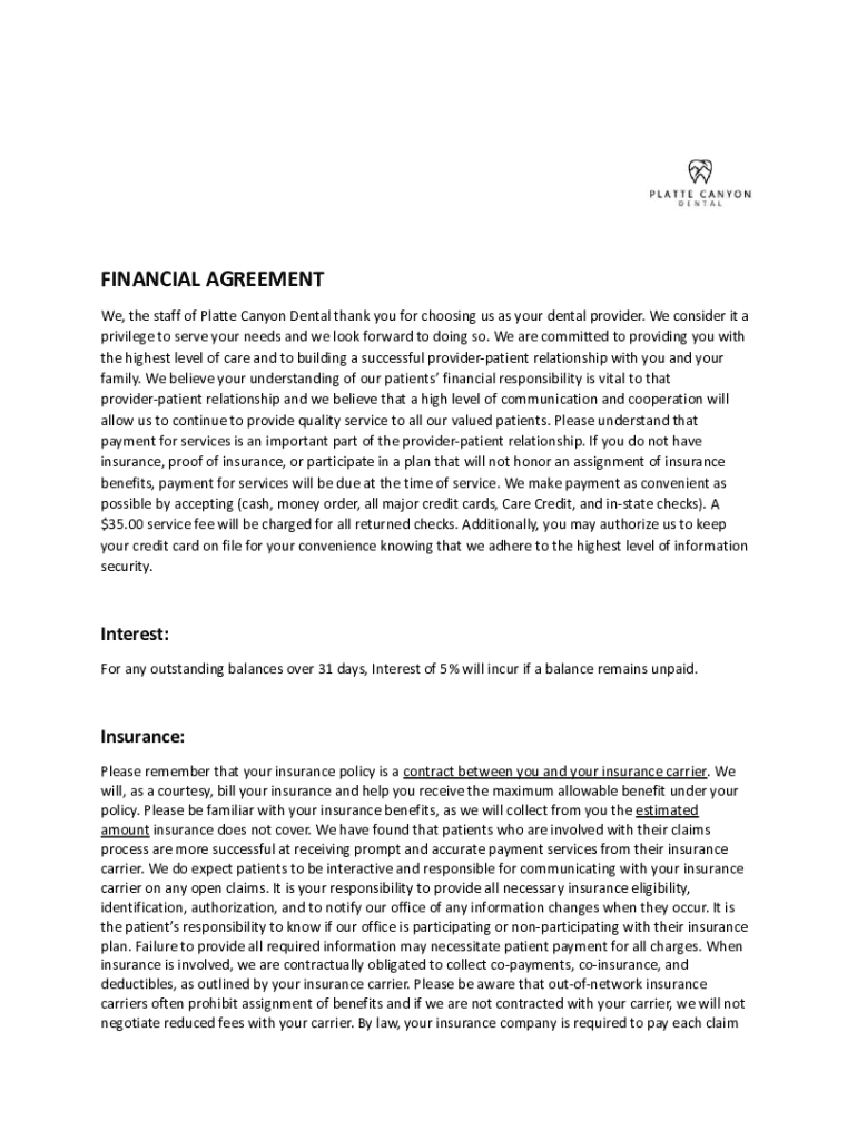 Get the free Financial Policy and Agreement - Canyon Dental Centre